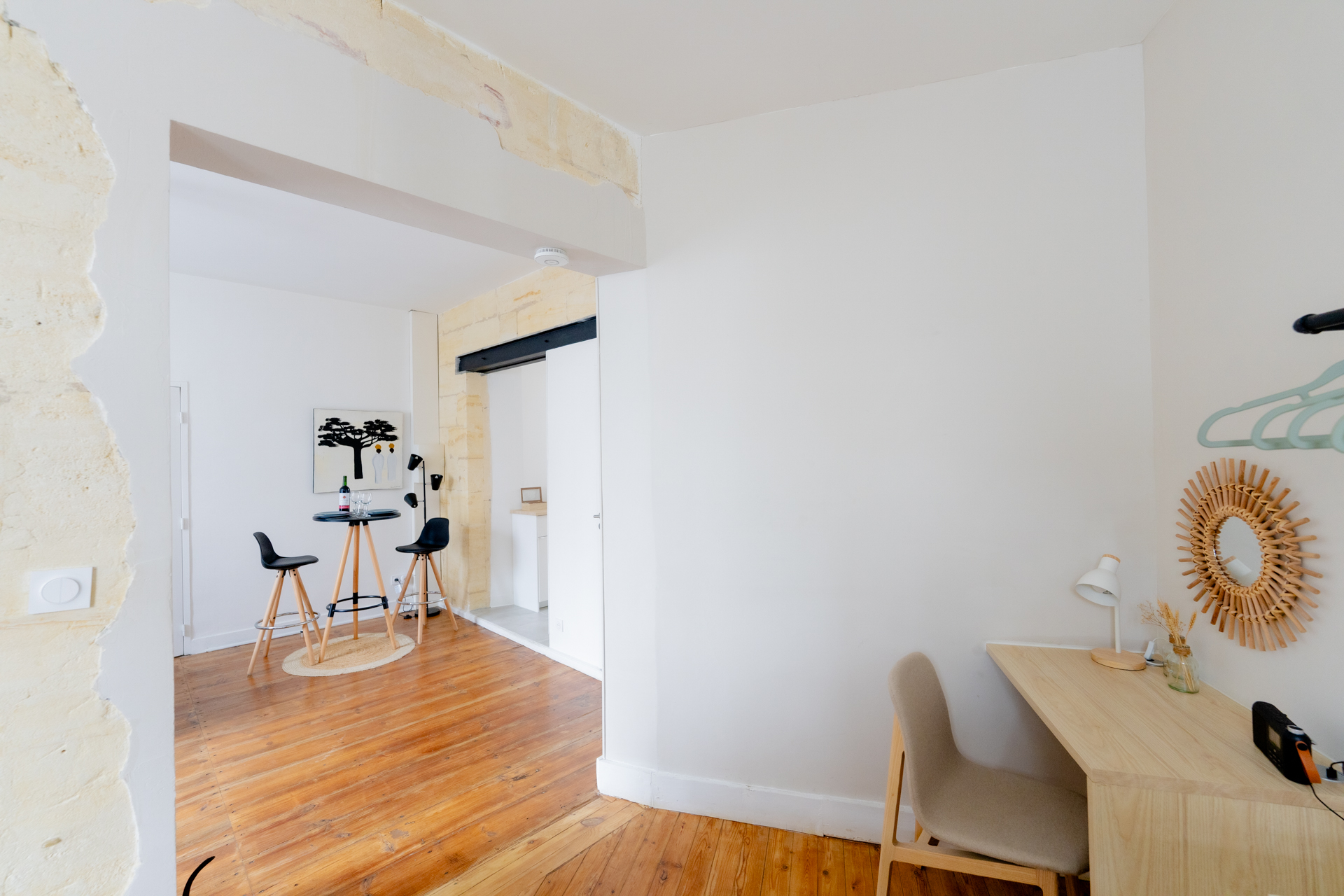 Se trata de una entrada independiente, el edificio solo cuenta con 2 apartamentos, por lo que es muy tranquilo. Este apartamento, situado en la planta baja (con vistas a la calle), está completamente a su disposición. Libourne ofrece una amplia red de transporte público, incluido el servicio La Cali Bus, que conecta con los municipios vecinos. La estación está a solo 5 minutos a pie. También puede guardar hasta dos bicicletas en las zonas comunes, bajo videovigilancia, para una seguridad óptima.