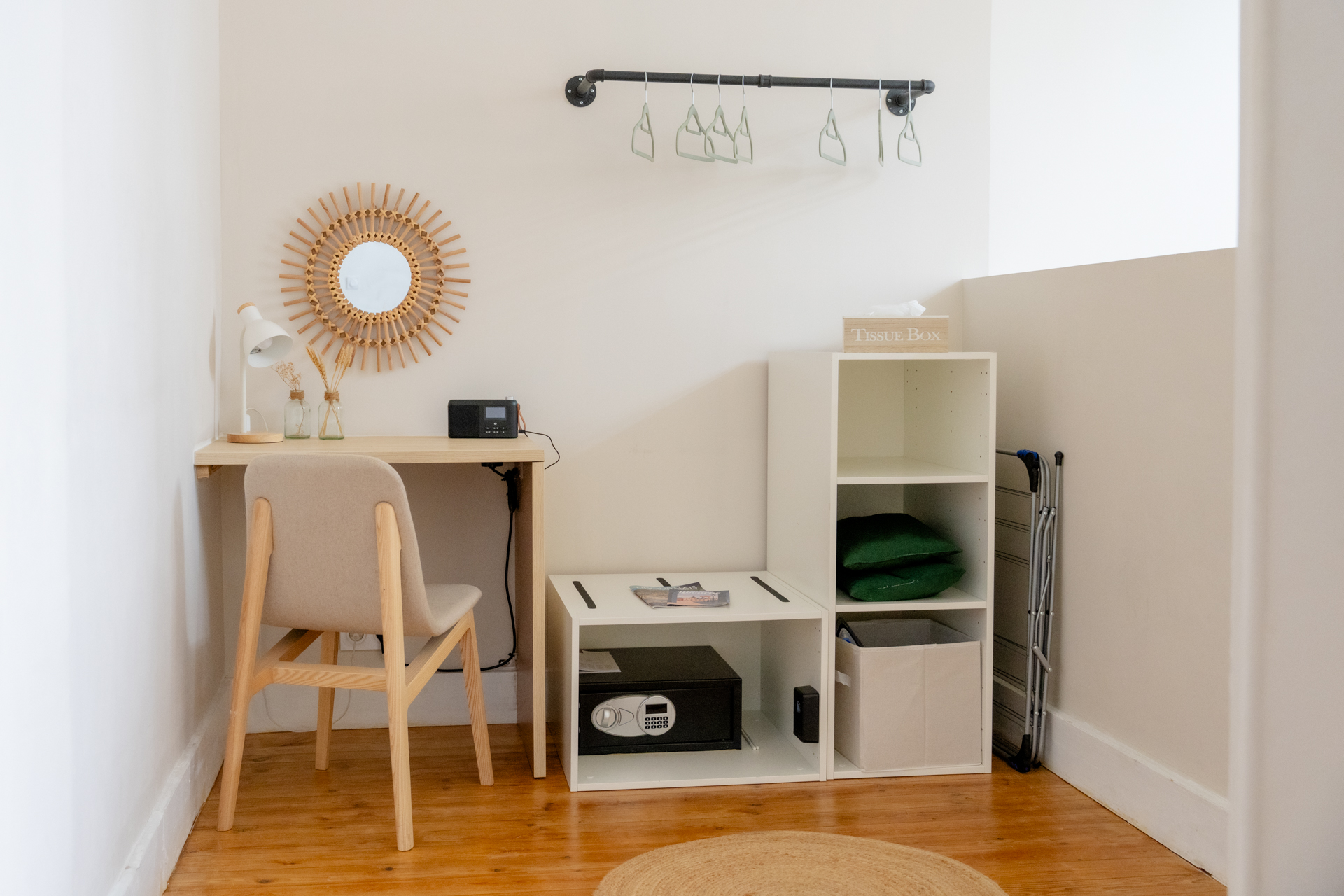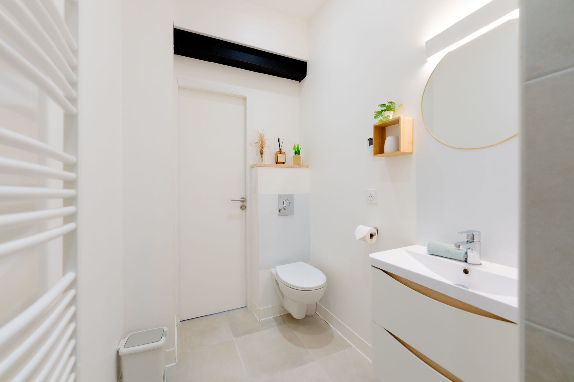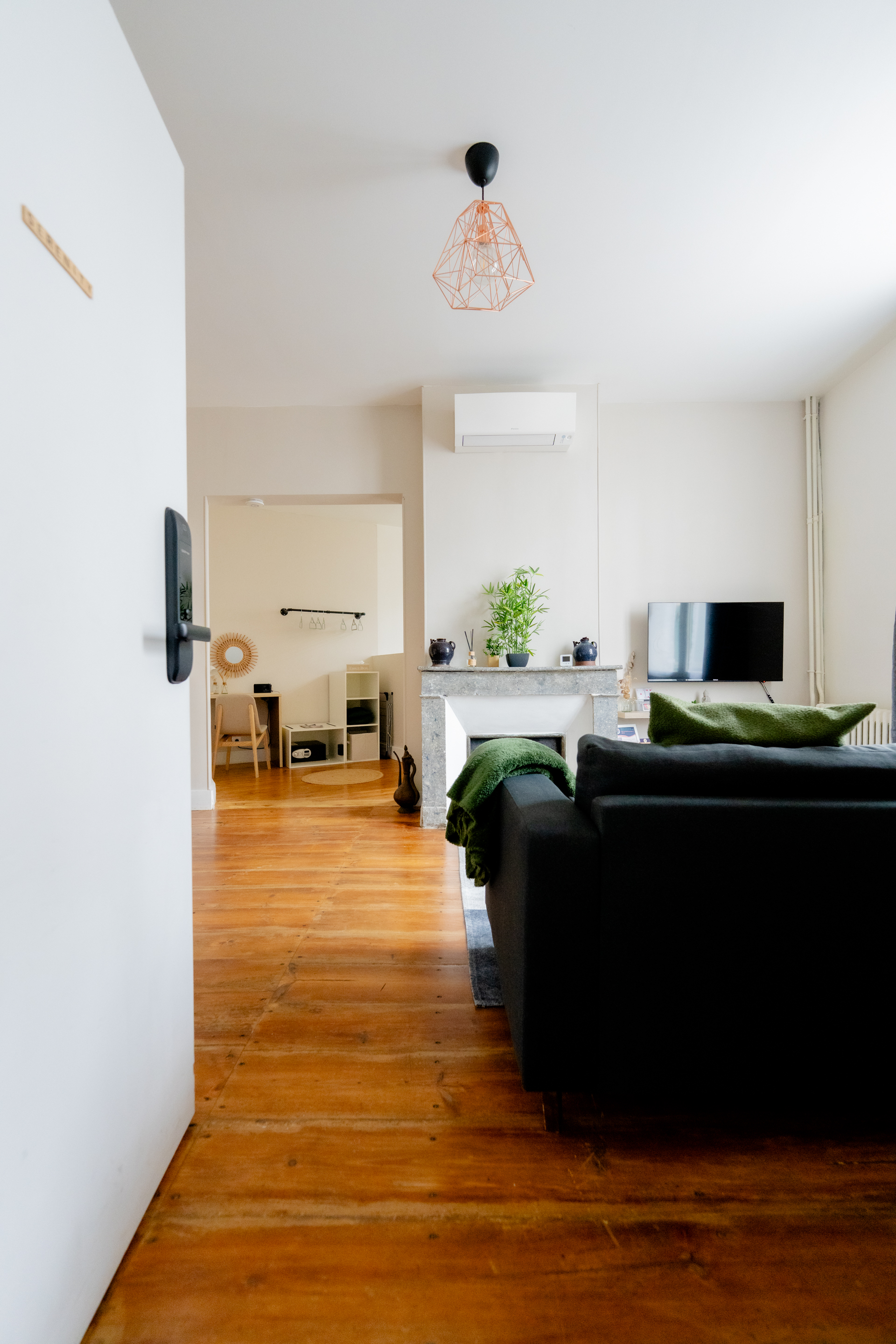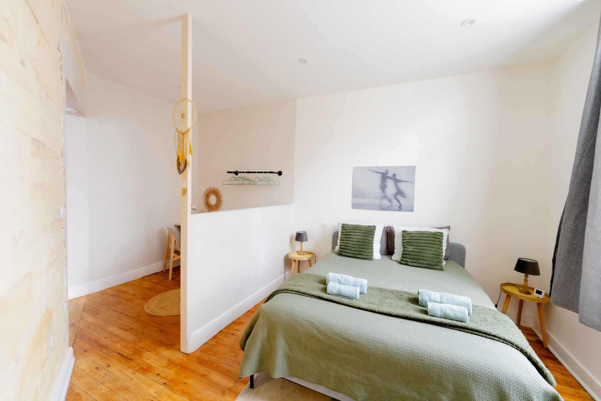El alojamiento se compone de las siguientes estancias: - Salón/comedor (TV conectada, sofá de 3 plazas, zona de comedor) - Dormitorio abierto (cama Queen-size - 160/200) - Espacio de trabajo - Baño (ducha italiana) con WC - Cocina equipada (placa de inducción, horno, microondas, cafetera, básicos de cocina, etc.) - Zona de vestidor y lavadora Suministros disponibles: - Sábanas y ropa de cama - Toallas de baño (2 por persona) - Básicos de cocina (aceite, sal y pimienta...) - Cafés, tés, azúcar/dulces - Productos básicos de limpieza (detergente, lavavajillas, paños, trapos, etc.) - Champú, gel de ducha y jabón de manos Otras ventajas: - Una cuna de viaje (con sábanas) disponible gratuitamente bajo petición - Posibilidad de guardar 2 bicicletas al final del pasillo - Suscripción a Netflix incluida y una amplia selección de canales de TV Además, también puede alquilar el apartamento de la planta baja (Harmony) si está disponible para privatizar el edificio.