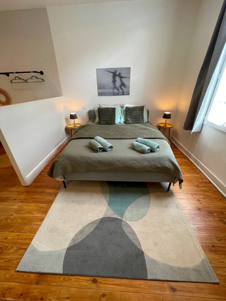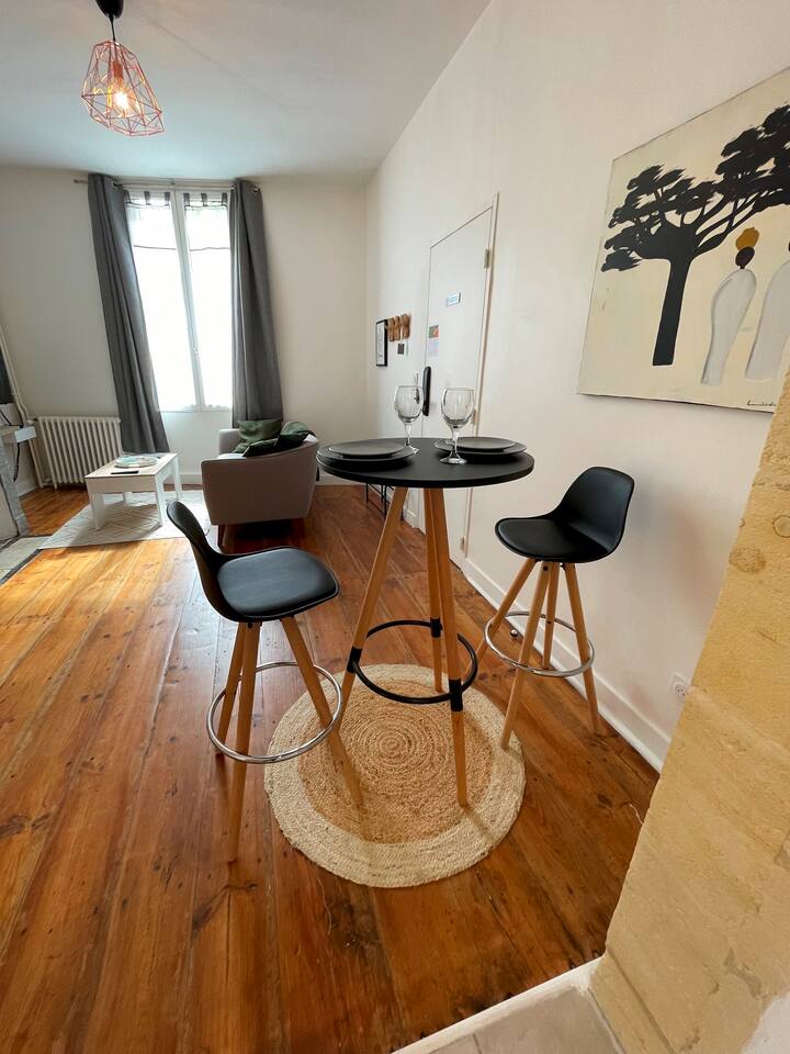 En plein centre de Libourne, venez profiter de cet appartement de 40m2 entièrement rénové en rez-de-chaussée avec vue dégagée et Netflix. Très lumineux et confortable, vous bénéficiez d'un parking gratuit à proximité les week-ends et jours fériés. À moins de 5 minutes à pied, vous trouverez la gare routière et ferroviaire qui vous mènera à Saint-Émilion, Bergerac ou encore au bassin d’Arcachon. Vous pouvez également louer l’appartement du 1er étage si disponible afin de privatiser l’immeuble.